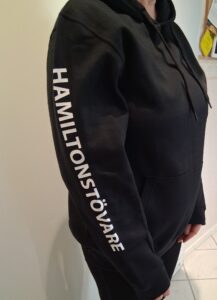 Hoddie med tryck höger “Hamiltonstövare”